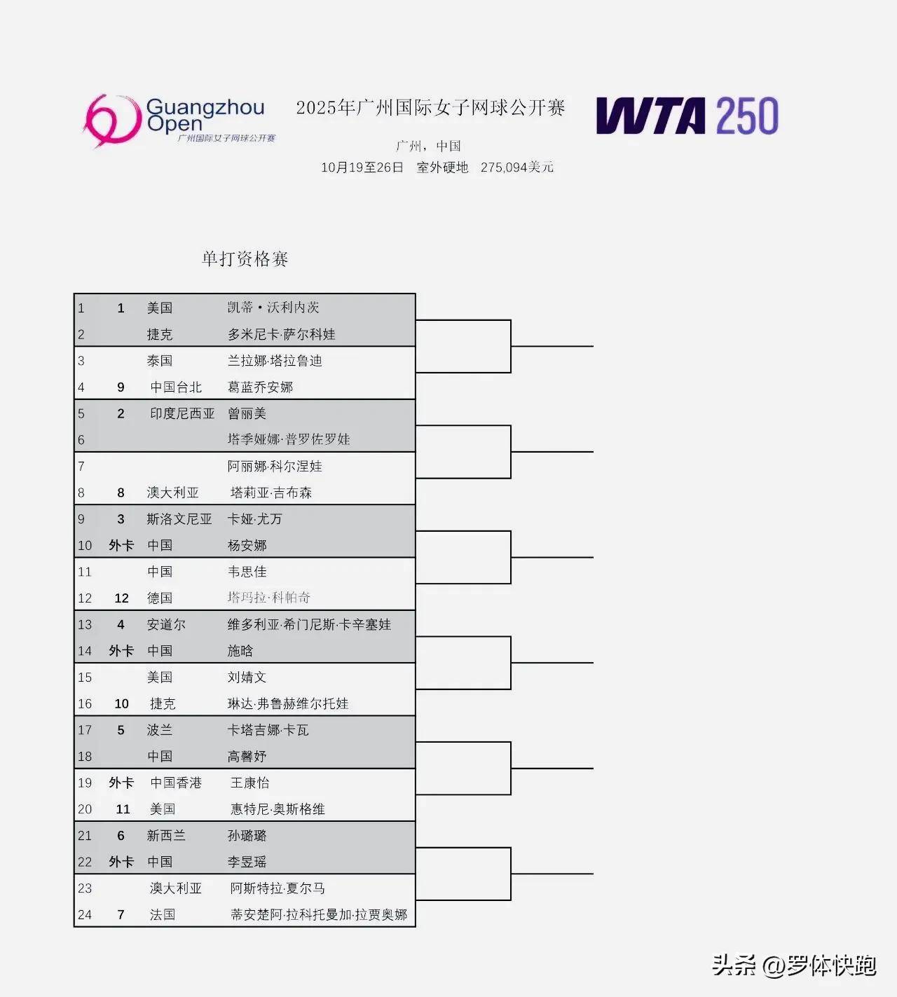 - WTA250广州网球公开赛WTA巡回赛2025赛程__女单排名直播签表全掌握资格
