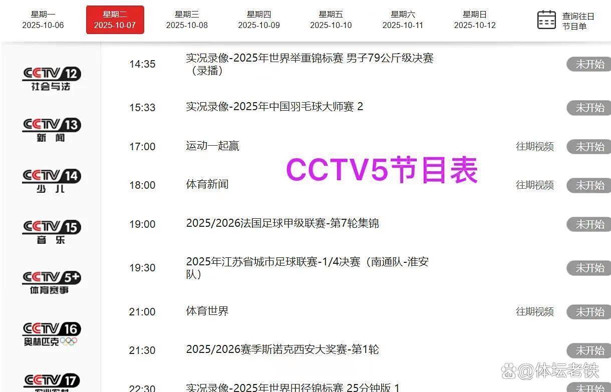 19点整,CCTV5没有选择直播任何一项进行中的赛事,而是出人意料地安排了法甲第7轮集锦。 这一编排引发了部分体育迷的讨论:“为什么不在黄金时段直播德约科维奇或丁俊晖的比赛? ”