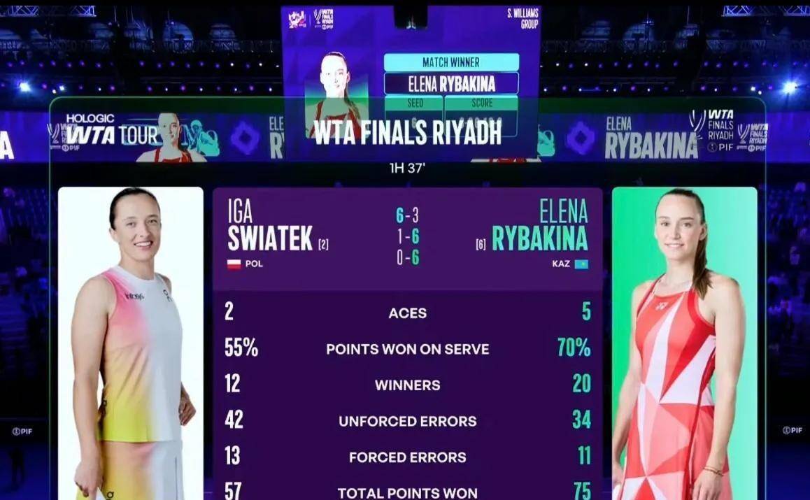 整场比赛的转折点出现在第二盘,莱巴金娜提升了一发得分率至83%,而斯瓦泰克的非受迫性失误却高达19次。