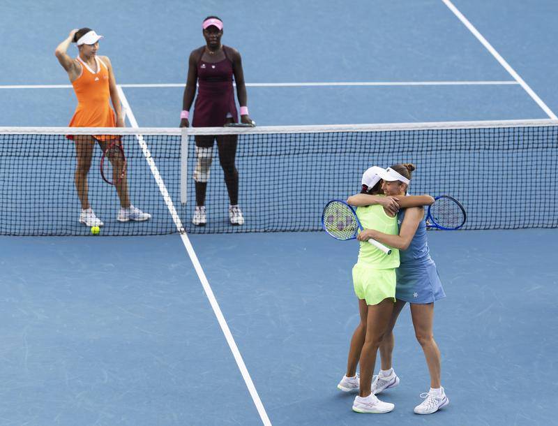 更难得的是,这是一对“临时重组”的组合。梅尔滕斯笑称,她们是最后一刻才组队的,这其实是两人重新搭档后的第一站比赛。上一次在大满贯搭档,她们打进了2022年温网女双决赛。