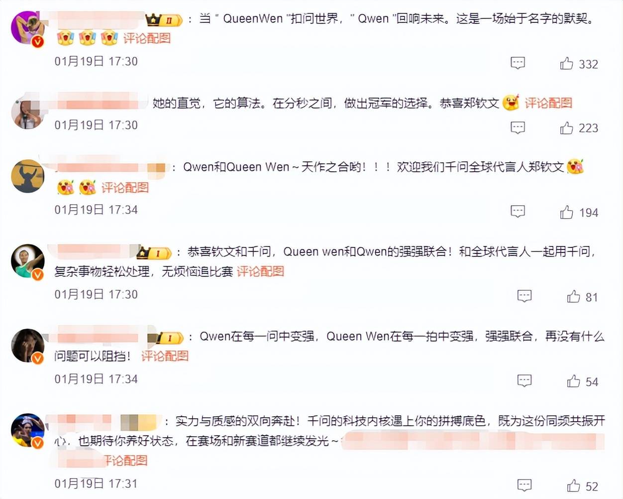 新代言堪称天选之合,她的英文昵称“QueenWen”与阿里AI助手“Qwen”发音高度契合。