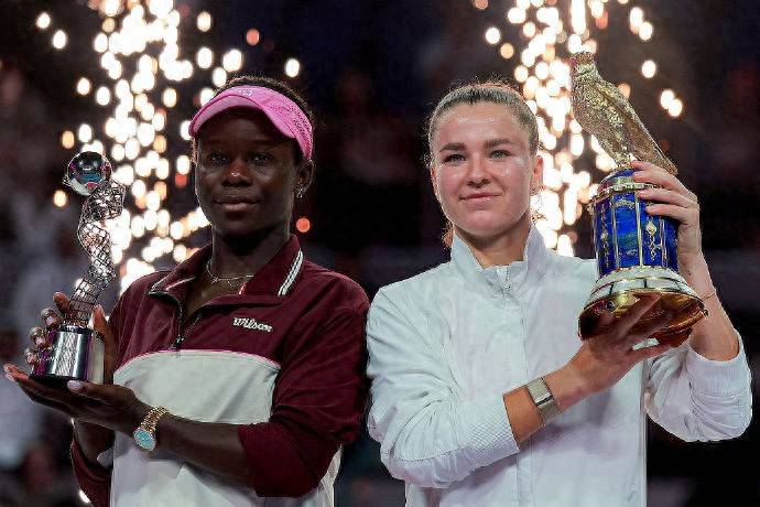 回顾本届多哈站,可谓是“黑马”频出。早在1/8决赛阶段,赛会前八种子选手就已折损过半。半决赛更是上演了“团灭”的戏码,头号种子斯瓦泰克、二号种子莱巴金娜等名将纷纷出局,萨卡里、奥斯塔彭科、穆霍娃与姆博科四位选手突出重围,最终,穆霍娃与姆博科成功会师决赛。