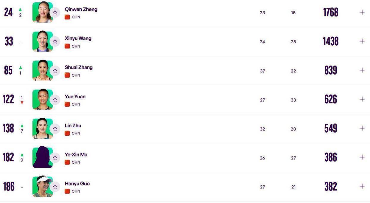 目光转回中国球迷最关心的金花。 郑钦文的名字后面,跟着一个向上的箭头:提升2位,来到世界第24。 这是她伤愈复出后参加的第一站比赛,多哈站。