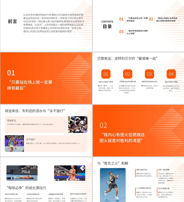 WTA巡回赛,女子网球,WTA排名,WTA赛程,女单四大满贯,女子网球直播/聚焦2025 WTA女子网球巡回赛,涵盖四大满贯、WTA1000/500/250赛事的赛程、排名、战报及竞猜推荐,为中文网球爱好者带来一站式资讯导航。2024年感动中国年度人物郑钦文,这个年仅21岁的湖北姑娘,用她手中的网球拍,在职业赛场上书写了一段属于中国网球的传奇。这个被球迷亲切称为火箭少女的女孩,以火箭般的速度在世界网坛崛起,成为中国新一代体育偶像。主题党课ppt: